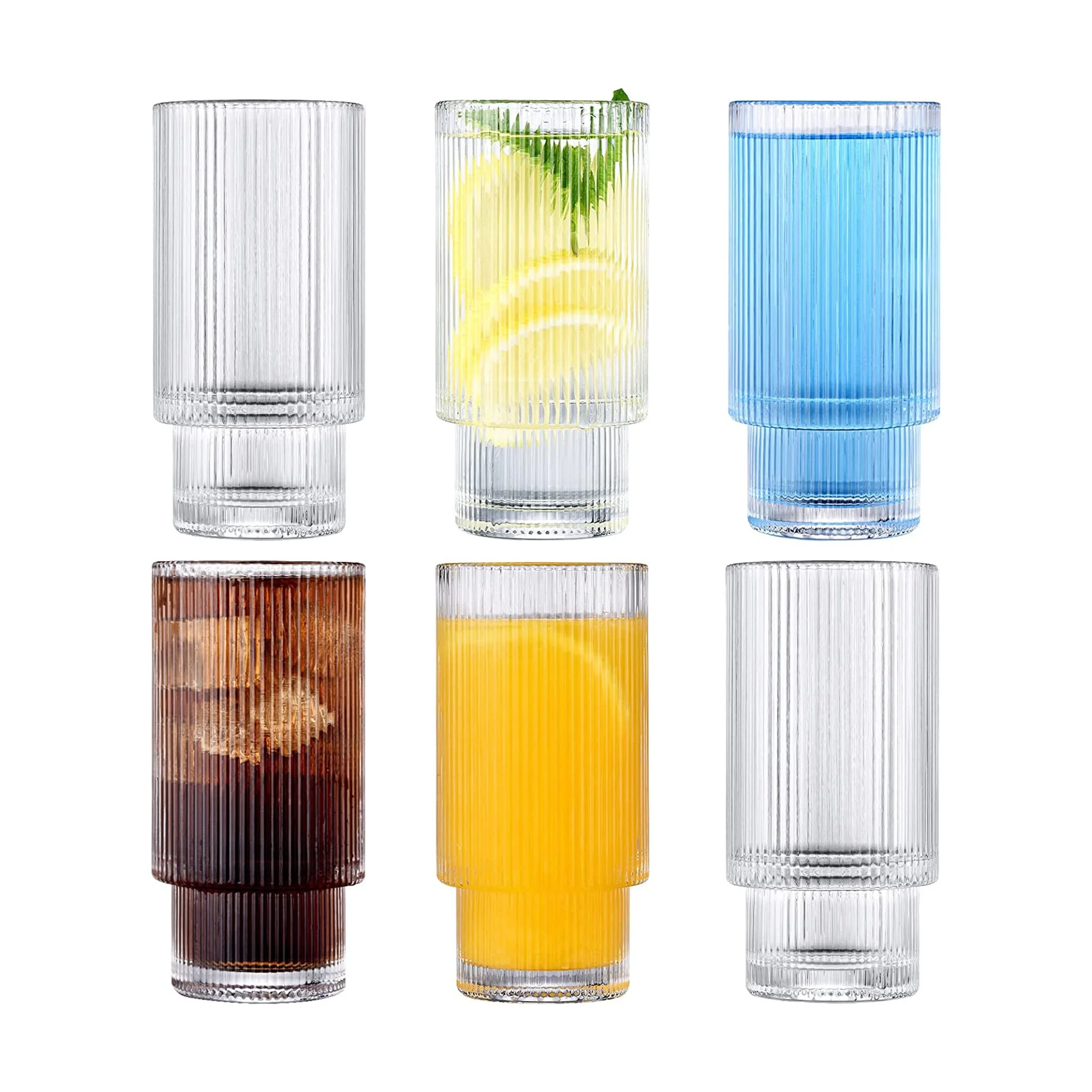 The BJMEDYM Vintage Glassware set is a unique and charming addition to any glassware collection. With a simple and generous appearance, this set of 6 ribbed glasses has a characteristic top-wide, bottom-narrow shape that makes it easy to stack and store, saving space. The anti-slip stripes on the surface also make the cups easy to grip. Measuring 2.6 inches in diameter and 5.4 inches in height, with a bottom diameter of 2.2 inches and a capacity of 12 ounces (350ml), these fluted glasses are a great choice for any drink, from water and iced tea to coffee and popular cocktails. Each cup is made of high-quality durable glass, lead-free, and manufactured to the strictest standards for safety. Although dishwasher safe, these glasses cannot be used in the microwave. The uniform and translucent design of each cup is delicate and adds luster to your drinks. With an effortlessly relaxed and cozy vibe, this ribbed glassware set is perfect for daily use and family dinner parties and makes a great gift for friends and family.