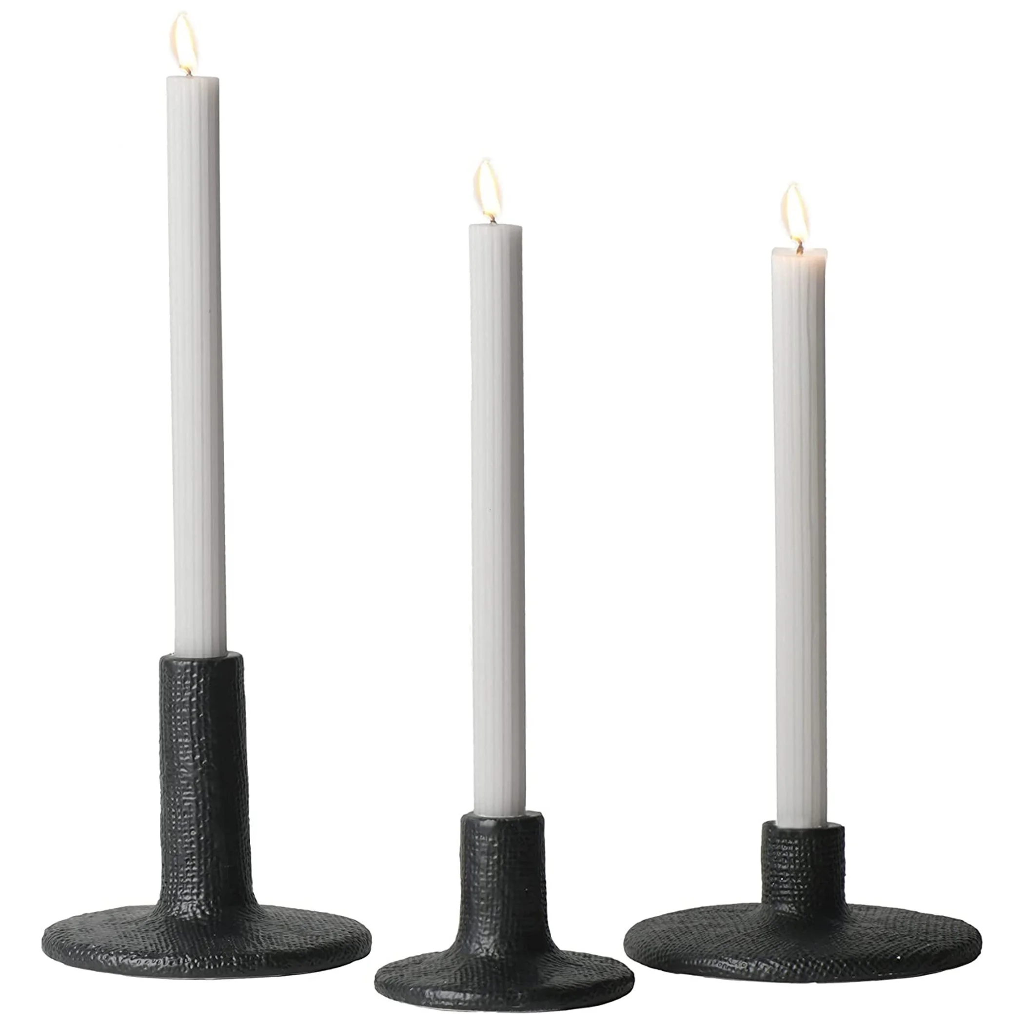 Main + Mesa Ribbed Textured Taper Candles: A Set of 6 Neutral Gray Candlesticks for Effortless Ambiance
