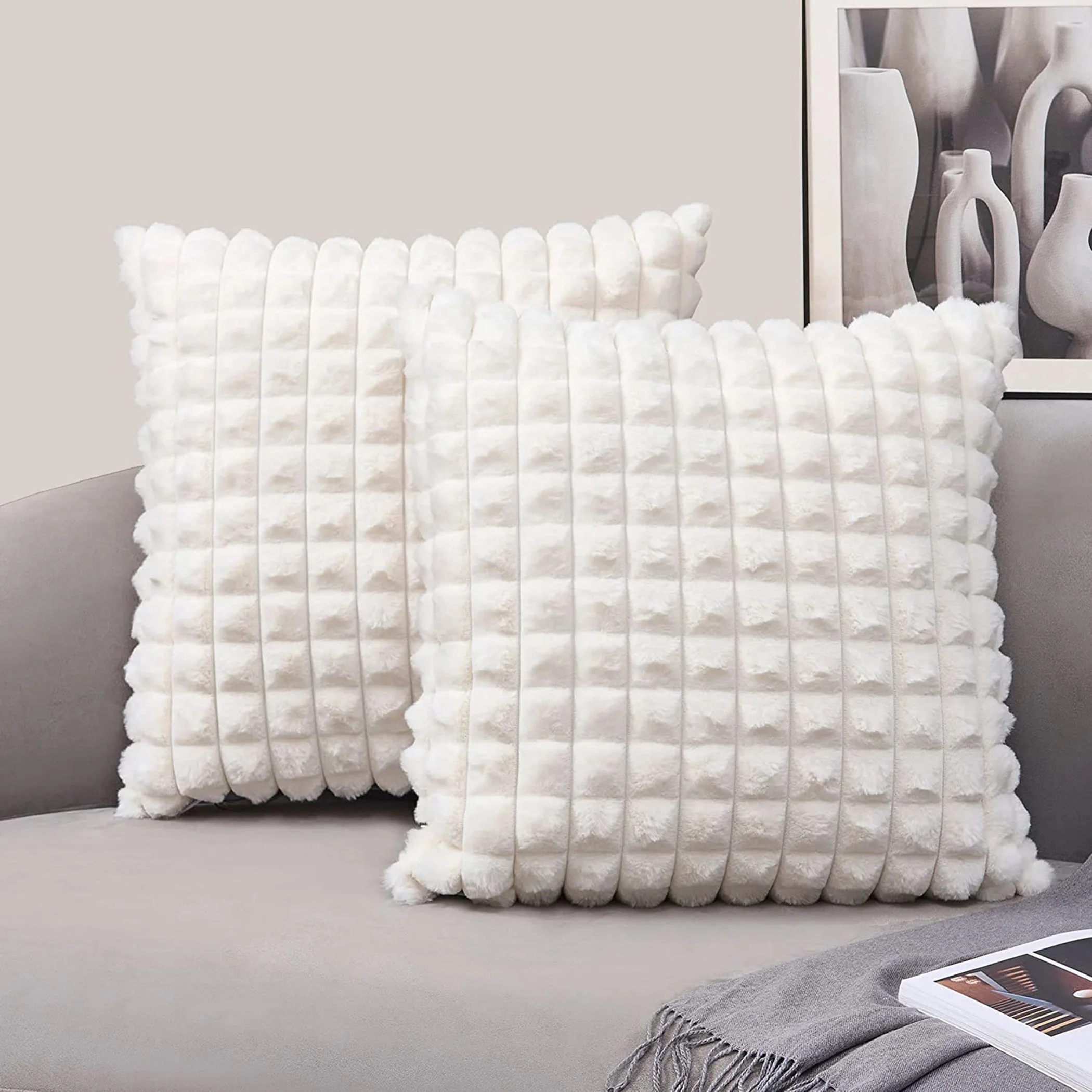The Mandioo Cream White Throw Pillow Covers are the perfect addition to your modern home decor. With a set of 2, these 20x20 inch square cushion covers bring a touch of luxury to any room. The soft and fluffy faux rabbit fur plaid is sure to add texture and warmth to your space, while the velvet back adds a touch of elegance. The checkered pattern is both timeless and stylish, making these pillow covers a versatile choice for any season. Whether you're using them to add a touch of sophistication to your couch, bed, or office, these pillow covers are sure to impress. And with their easy care instructions, you can keep them looking great for years to come.