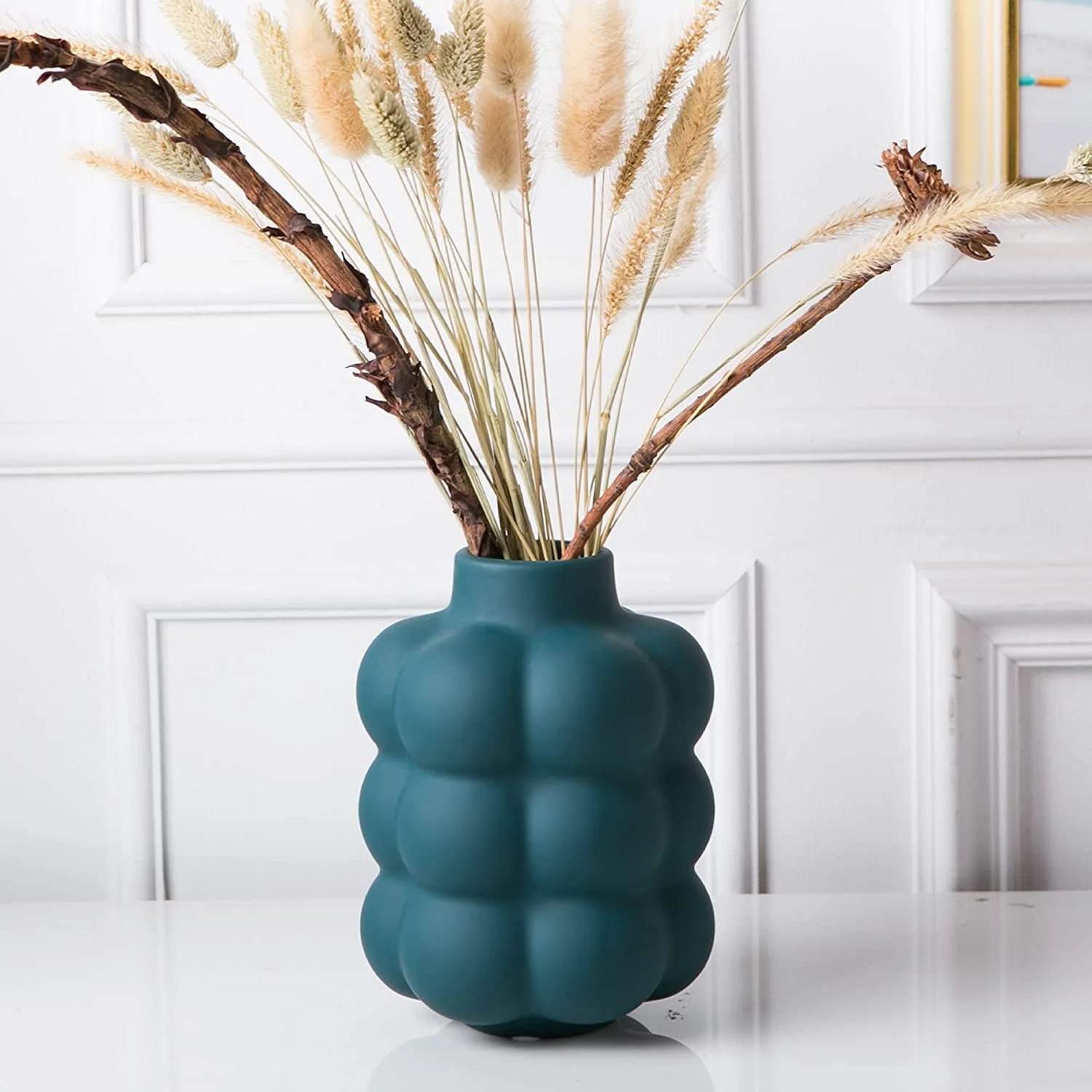 This Handcrafted Modern Ball Shaped Ceramic Vase combines traditional craftsmanship with modern design to create a versatile and stylish piece for any room. Made of 100% high-quality ceramic and with a smooth rubber paint surface, this vase is both durable and elegant, able to withstand daily use while adding a touch of sophistication to any décor. The compact size and lightweight design make it a great addition to any living room, bedroom, or other space, and its ability to hold any bouquet without tipping makes it a practical choice for any flower arrangement. Whether for personal use or as a gift, this handmade ceramic vase will bring effortless beauty to any home.
