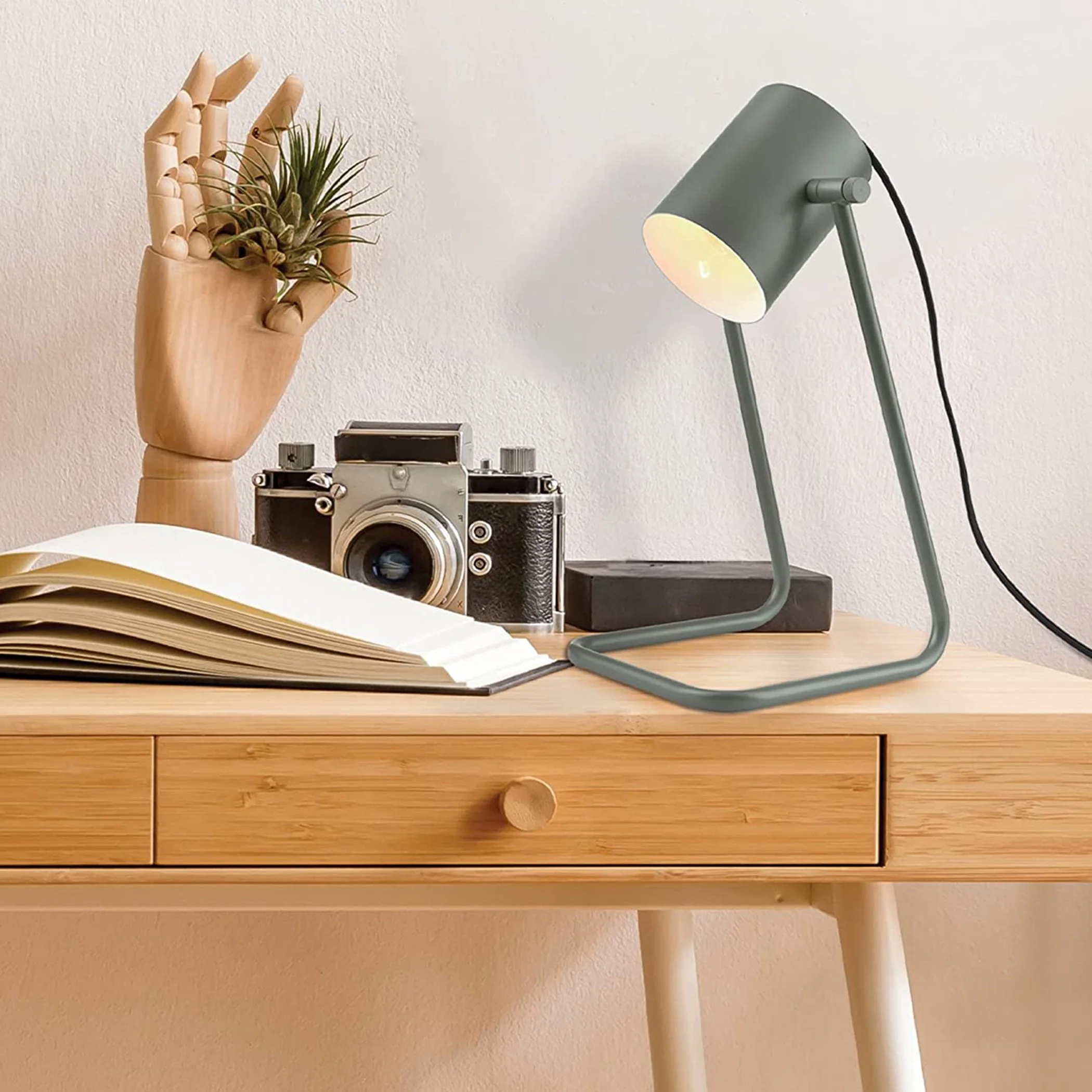 The Globe Electric 52878 Sahara Desk Lamp is a stylish and functional lighting solution, perfect for adding a modern industrial touch to any space. The sleek base and cylindrical shade make it a statement piece, while its ability to pivot the lamp head allows for ample light control and versatility. The desk lamp requires a single E12/Candelabra Base 40W bulb (sold separately) and is compatible with LED, Incandescent, and Halogen bulbs. With its 14-inch height and sleek design, the Sahara Desk Lamp is the perfect accent piece for your home or office.